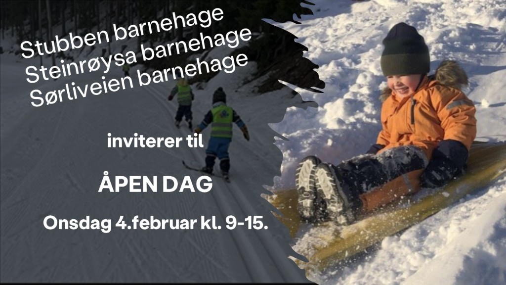 Velkommen til åpen dag. Skal du søke barnehageplass til høsten? Da er det bare å ta turen innom barnehagen vår:-) Velkommen